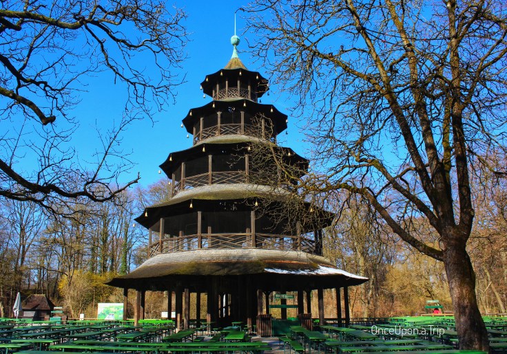 The Chinesischer Turm (Chinese Tower) located in the English Garden is the most famous beer garden in Munich, Germany.