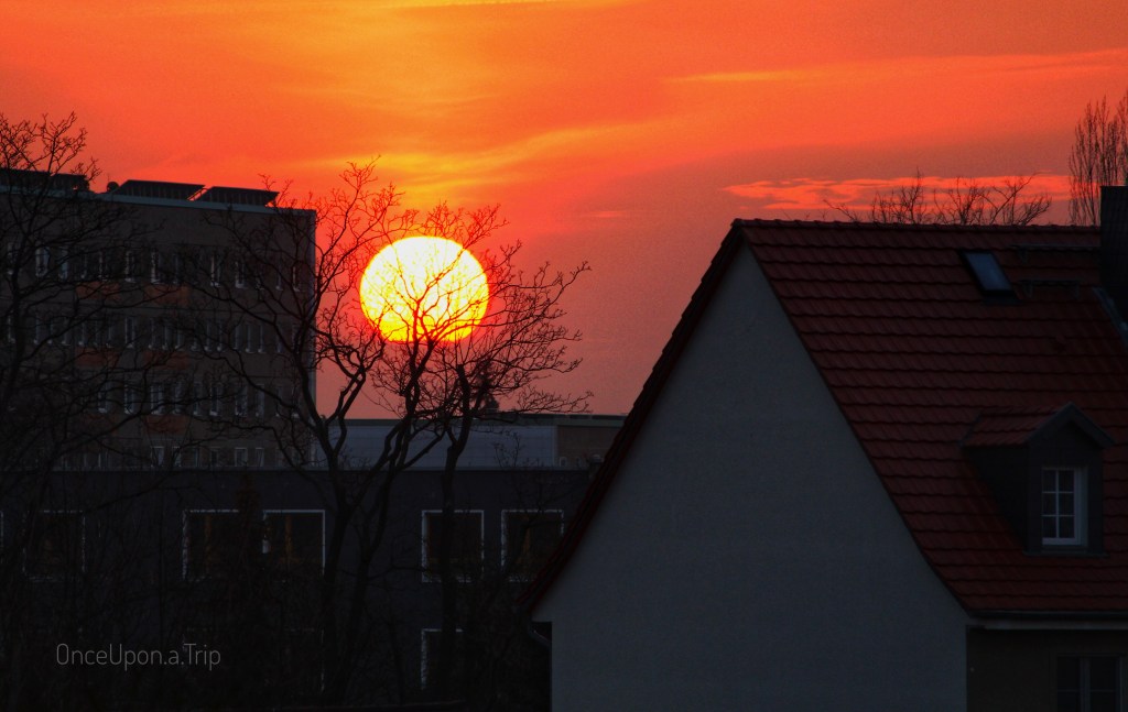A beautiful sunset in the city of Cottbus in eastern Germany.